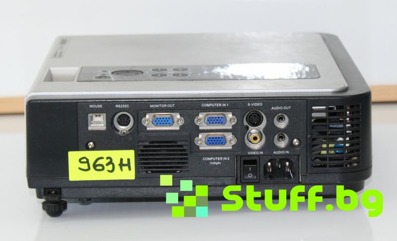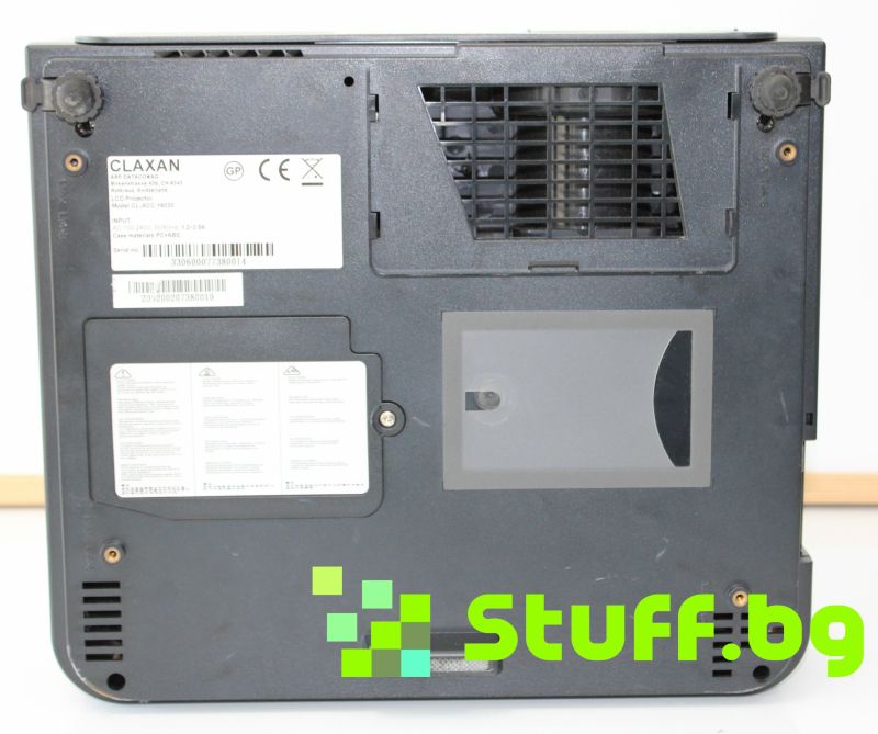 На проектора е залепена лепенка с часовете работа на лампата.