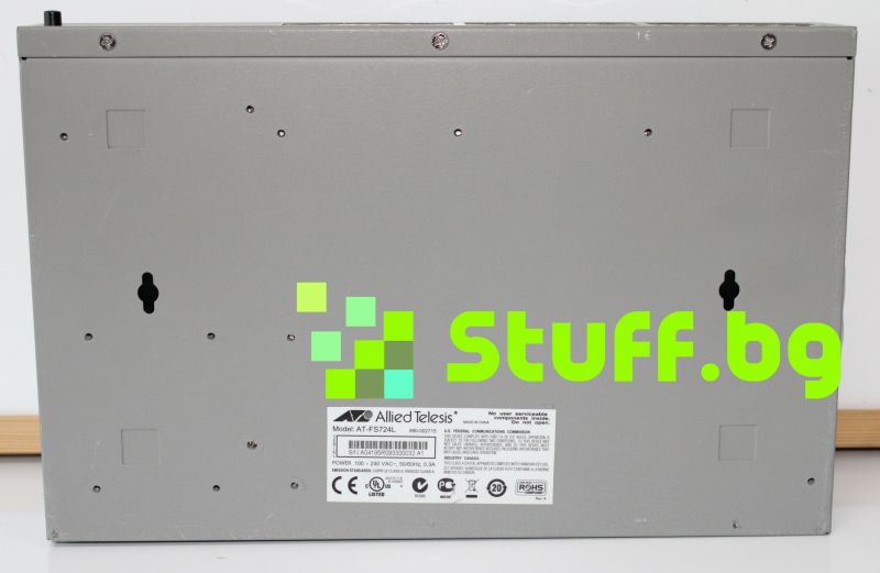 Allied Telesis AT-FS724L. Тип превключвател: Неуправляван. Брой базови комутационни RJ-45 Ethernet портове: 24. Пълен дуплекс. Таблица с MAC адреси: 4000 записа. Мрежови стандарти: IEEE 802.3u, IEEE 802.3x