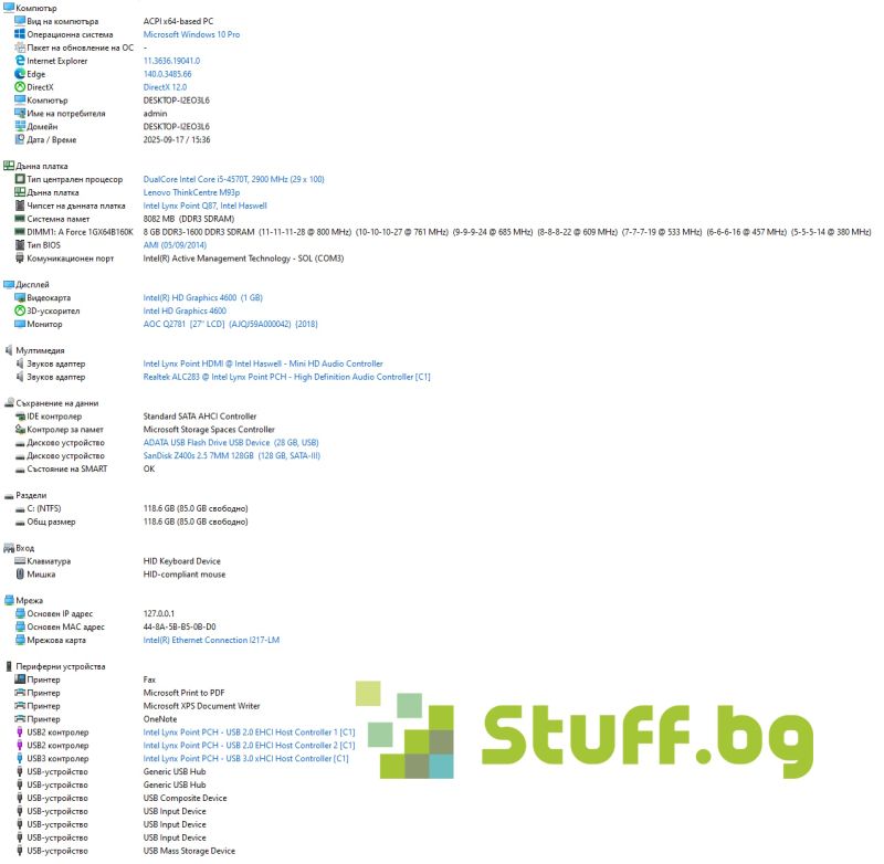 Процесор: Intel Core i5-4570T 2.90 GHz