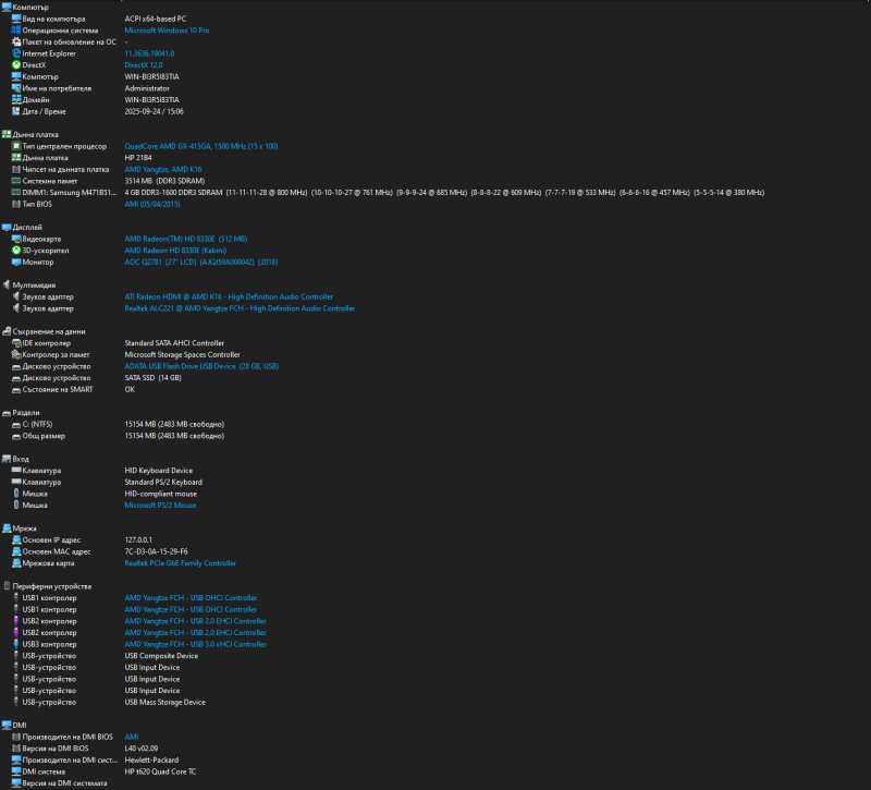 Процесор: AMD GX-415GA (quad core) 1.5GHz